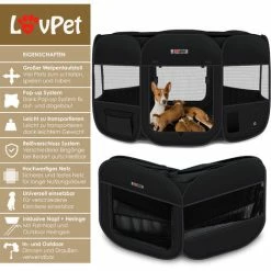 LOVPET® Recinto Per Cuccioli – Recinto Per Animali Pieghevole Per Piccoli Animali, Cani, Gatti, Incl. Ciotola Per Cani – Box Per Cani – Recinzione – Tessuto Oxford – Sistema Pop-up Ad Apertura Rapida