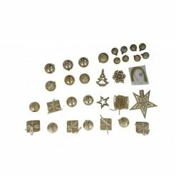 Dmora Box 50 Pezzi Decorazioni Natalizie Multi-forma, Ornamenti E Puntale, Set Assortimento Palline Di Natale, Scatola Set Albero Di Natale, Da 4 A 7 Cm, Colore Oro, Con Imballo Rinforzato