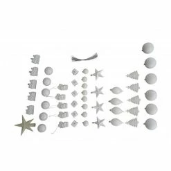 Dmora Box 50 Pezzi Decorazioni Natalizie Multi-forma, Ornamenti E Puntale, Set Assortimento Palline Di Natale, Scatola Set Albero Di Natale, Da 4 A 10 Cm, Colore Bianco, Con Imballo Rinforzato
