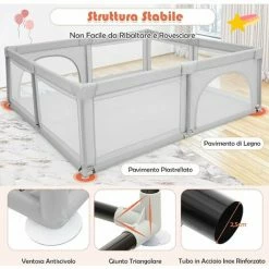 Dimensioni Box Per Bambini 1,51,8 M Con Tappetino 2 Anelli Appesi + Tappetino Con Motivo Animale (grigio)