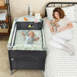 Lettino Culla Da Viaggio Per Neonati E Bambini, Box Portatile Pieghevole, Con Materassino Ruote E Borsa, Grigio 120x100x70 Cm