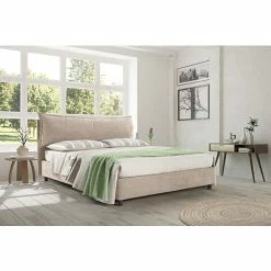EVERGREENWEB – Letto King Size Super Misura Rete 180×210 Con Moderno Box Contenitore E Rete A Doghe In Legno Elegante Testiera Tessuto Imbottito SFODERABILE Ideale Per Camera Da Letto Color Tortora