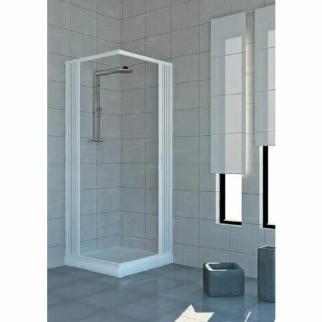 Box doccia quadrato 70×70 a soffietto in PVC con apertura angolare.