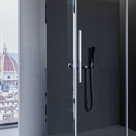 Box doccia due lati h195 con porta scorrevole e lato fisso, la perfezione assoluta si ritrova nei dettagli di questo meraviglioso prodotto. Maniglia in acciaio inox da 50cm dona alla porta quel tocco di estetica pura e minimalista. Chiusura magnetica con magnete di chiusura posto all’interno di un elegante profilo di alluminio che ne preserva a vita l’integrità. Anticalcare interno esterno per preservare ed evitare formazioni di calcare permanente