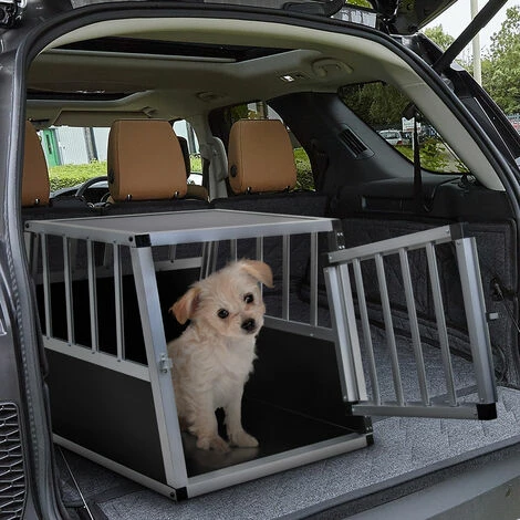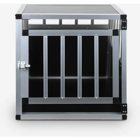 Robusto ma al tempo stesso maneggevole, questo trasportino rigido per cani è realizzato con una struttura trapezoidale in alluminio di alta qualità che si adatta perfettamente alle dimensioni dei portabagagli di molte autovetture e le cui misure sono indicate per trasportare cani di taglia piccola o media. I lati areati e inclinati garantiscono un perfetto posizionamento nel portabagagli, con le grate lungo tutto il perimetro che assicurano la corretta circolazione dell’aria senza il rischio di surriscaldamento e offrono inoltre un’ottima visibilità al vostro cucciolo che si sentirà perfettamente a suo agio. Facilissimo da pulire grazie alla costruzione in MDF rifinito in melaminico, il box resiste efficacemente agli agenti atmosferici ed è dotato di una porta frontale fissata con salde cerniere in metallo robusto che agevola l’accesso e di angoli in plastica in modo da evitare che il vostro cagnolino possa farsi male durante il viaggio.