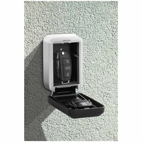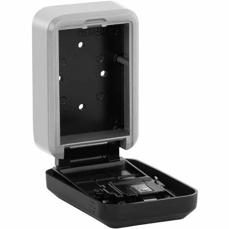 HighlightsSicura: lucchetto a 4 cifre con 10.000 combinazioni numeriche possibili e copertura. Protettiva: tasto per resettare il codice all’interno della cassetta. Spaziosa: interno grande con spazio per molte chiavi. Stabile: struttura resistente e duratura in lega di alluminio. Montaggio semplice: buchi preforati sulla parete posteriore per un montaggio sul muro semplice con quattro viti e tasselli inclusi nella spedizione.KeyfactsPulita & sicura! La cassetta portachiavi con combinazioneNon sai se nascondere la chiave della porta, della cantina o del garage sotto il tappetino? Allora la pratica cassetta per chiavi ST-KS- 200N dalle attrezzature per ufficio di Stamony è la scelta giusta per te! Grazie al montaggio a muro della cassetta di sicurezza chiudibile a chiave e resistente alle intemperie puoi posizionare le chiavi anche all’aperto o dovunque siano necessarie.Chiavi sempre a portata di mano con la cassetta portachiavi dall’attrezzatura per l’industria di StamonyPerché portare con sé le chiavi oppure le chiavi di ricambio per l’auto e rischiare di perderle? La cassetta di sicurezza per chiavi è dotata di un lucchetto con combinazione che protegge dagli accessi non autorizzati. È possibile generare 10,000 combinazioni di numeri, ciò rende molto improbabile che i ladri riescano ad aprire il lucchetto. La combinazione di quattro numeri scelta deve essere comunicata solo a persone di cui ci si fida e che possono avere accesso alla cassetta. Per cambiare il codice basta far scorrere l’interruttore all’interno della cassetta verso l’alto. Poi basta selezionare la combinazione di numeri desiderata e premere di nuovo la leva verso il basso per salvare il nuovo codice.La cassetta portachiavi è realizzata in lega di alluminio molto resistente. Il materiale e la struttura sono realizzati in modo che l’armadietto non possa essere aperto neanche mediante delle martellate. L’interno del box ha dimensioni pari a 9 x 7,6 x 2,5 cm e offre sufficiente spazio per stivare al sicuro molte chiavi oppure un mazzo di chiavi. Affinché la serratura con la combinazione non venga vista subito, è presente una copertura. Il lucchetto viene protetto da sporco, pioggia, vento e neve. In questo modo la cassetta per chiavi con codice di sicurezza è il luogo ideale dove conservare le chiavi in modo sicuro, asciutto e pulito.