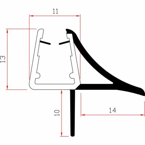 Guarnizione box doccia orizzontale con gocciolatoio per vetri di spessore da 6 mm a 8 mm.
