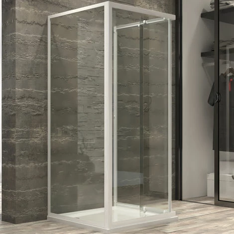 Cabina Box Doccia Angolare con due ante scorrevoli e Parete fissa in cristallo temprato da 4mm