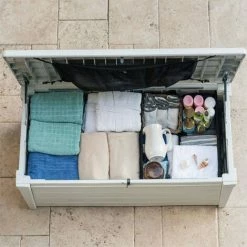 Deuba Baule Da Giardino Coperchio Contenitore Da Esterno Box Cuscini Ed Utensili Per Esterni Grigio