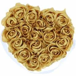 Relaxdays Bouquet Rose Eterne, Box Bianca A Cuore, 18 Fiori Finti, Elegante Idea Regalo, Scatola Romantica, Bianco Oro