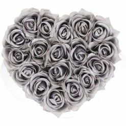 Relaxdays Bouquet Rose Eterne, Box A Cuore, Mazzo 18 Fiori Finti, Elegante Idea Regalo, Scatola Romantica, Nero Argento