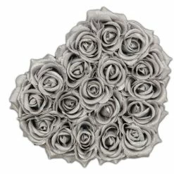 Relaxdays Bouquet Rose Eterne, Box Bianca Cuore, 18 Fiori Finti, Elegante Idea Regalo, Scatola Romantica, Bianco Argento