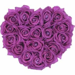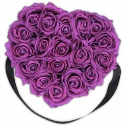 Relaxdays Box Di Rose A Forma Di Cuore, 18 Rose, Nero, Resistente 10 Anni, Idea Regalo, Box Decorativo, Lilla