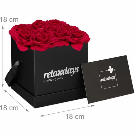 L’elegante scatola con roseè l’evoluzione moderna del classico mazzo di rose, con cui potete godere ognigiorno della vista di meravigliosi fiori. La combinazione tra la scatola nera ele 9 rose in stoffa realistica rende il box un’ attrazione per gli sguardinella vostra casa. Il bouquet di rose è ideale come decorazione per il tavolo oper il matrimonio, ma anche come regalo per San Valentino o per il compleanno -la realizzazione a mano dei fiori offre un piacere duraturo per anni.