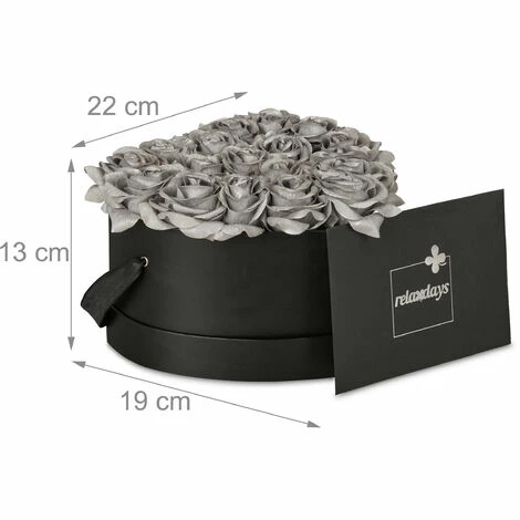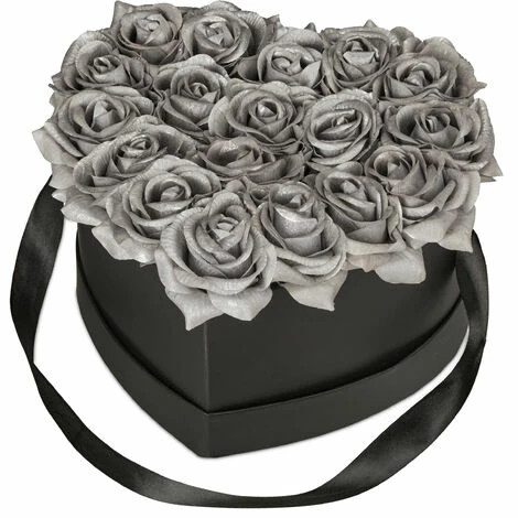 L’elegante scatola con rose è l’evoluzione moderna del classico mazzo di rose che ti permette di godere ogni giorno della vista di meravigliosi fiori. La combinazione tra la scatola nera a forma di cuore e le 18 rose argentate porta un tocco di eleganza ovunque tu la metta. Il bouquet di rose è ideale come centrotavola per feste speciali, come anniverasi o matrimoni, ma anche come regalo per altre occasioni romantiche o per compleanni – la realizzazione a mano dei fiori offre un piacere duraturo per anni.