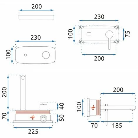 - Metodo di montaggio del rubinetto: da incasso, murale